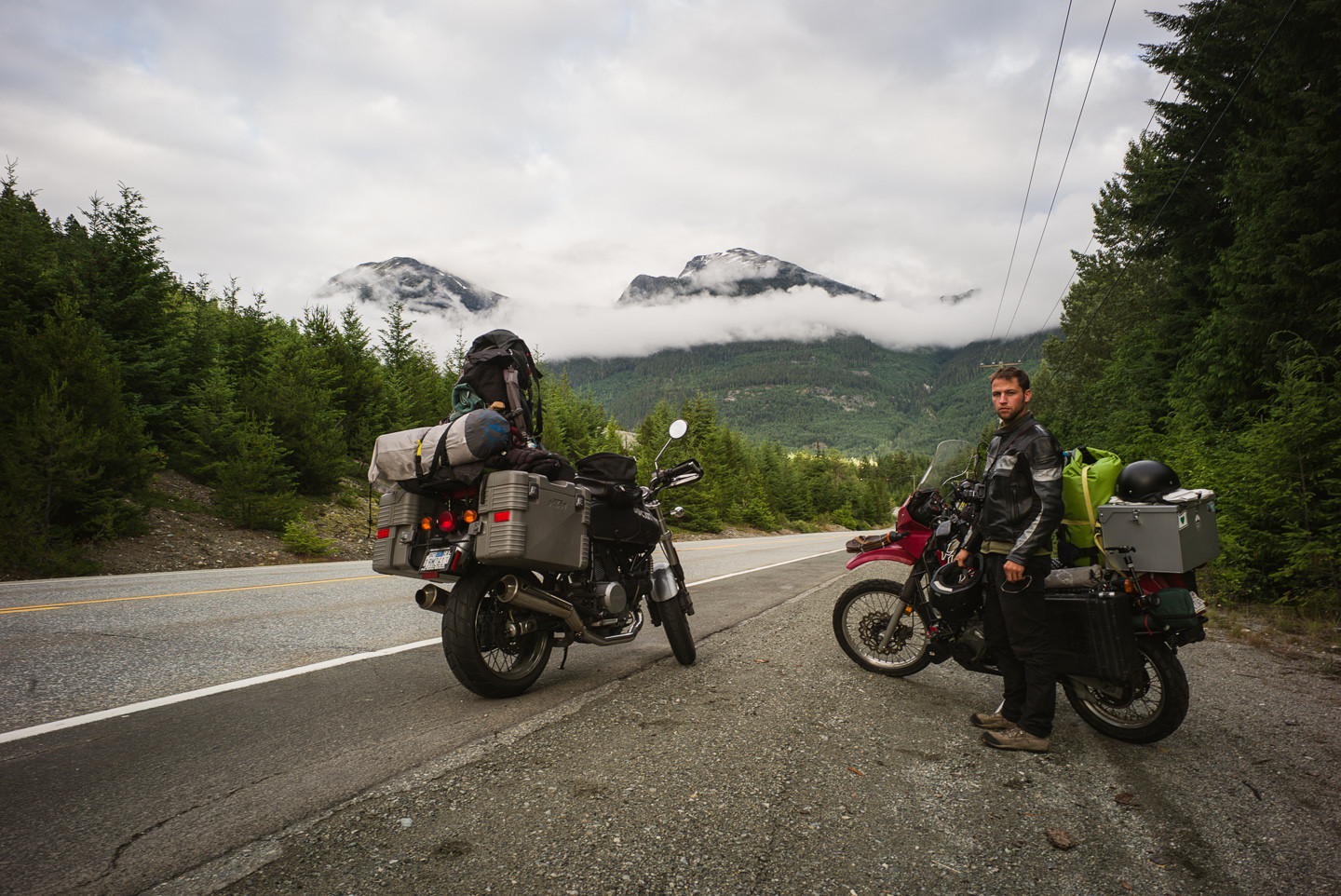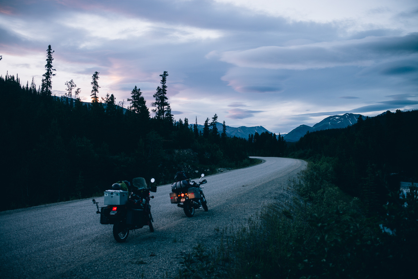 Una foto rápida junto al río Yukón. Cada vez se nos daba mejor montar el equipaje de las motocicletas.