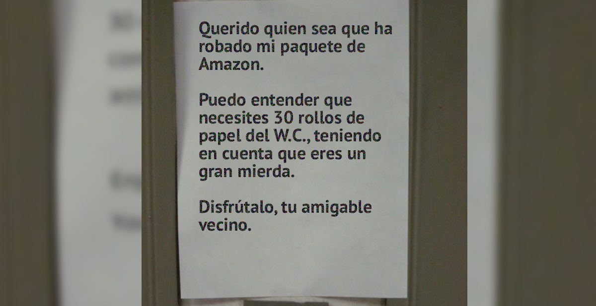«Querido quien sea que ha robado mi paquete de Amazon: