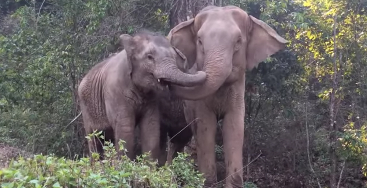No tardaron mucho -apenas un par de semanas- en encontrar a Mae Yum, la madre de la joven elefanta. Lo que vas a ver a continuación son las reacciones que tuvieron cuando por fin fueron reunidas, después de 3 largos años de separación. Tened pañuelos a mano por si se os caen algunas lagrimillas del tamaño de un paquidermo.