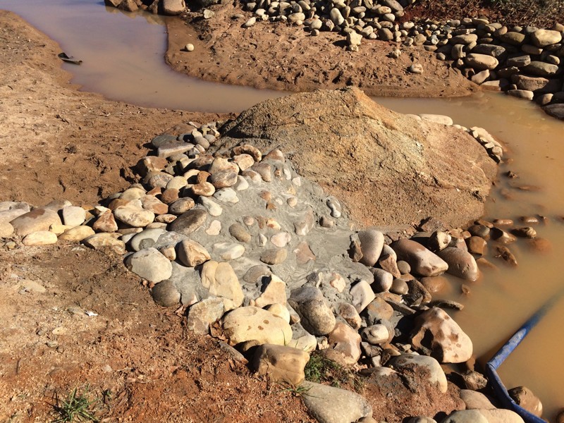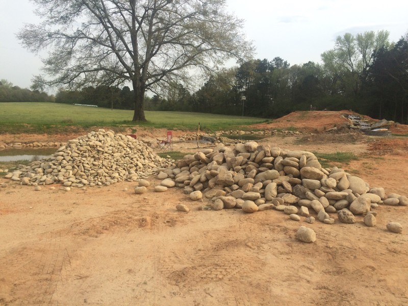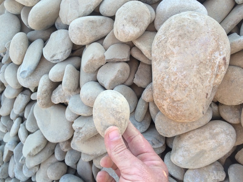 Luego fue el momento de colocar las piedras de río, 70 toneladas en total