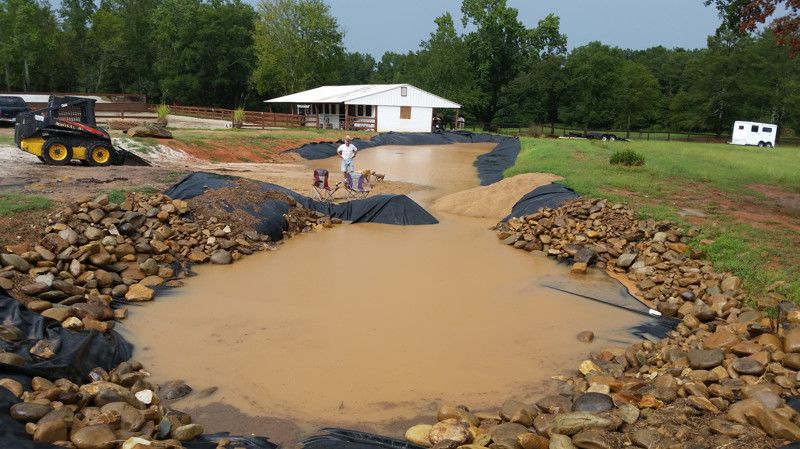 La familia compró 60 toneladas de tierra nueva para circundar el lago
