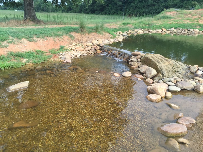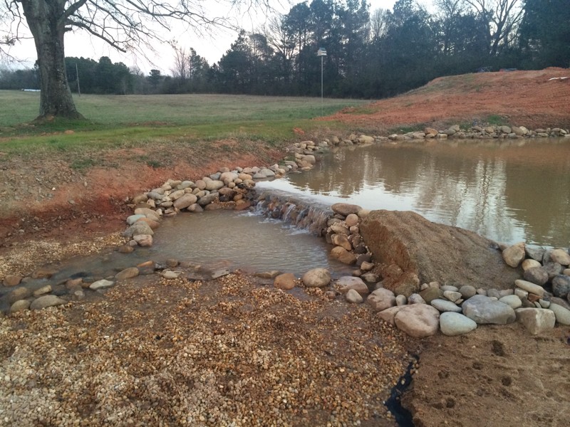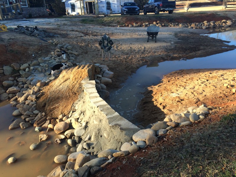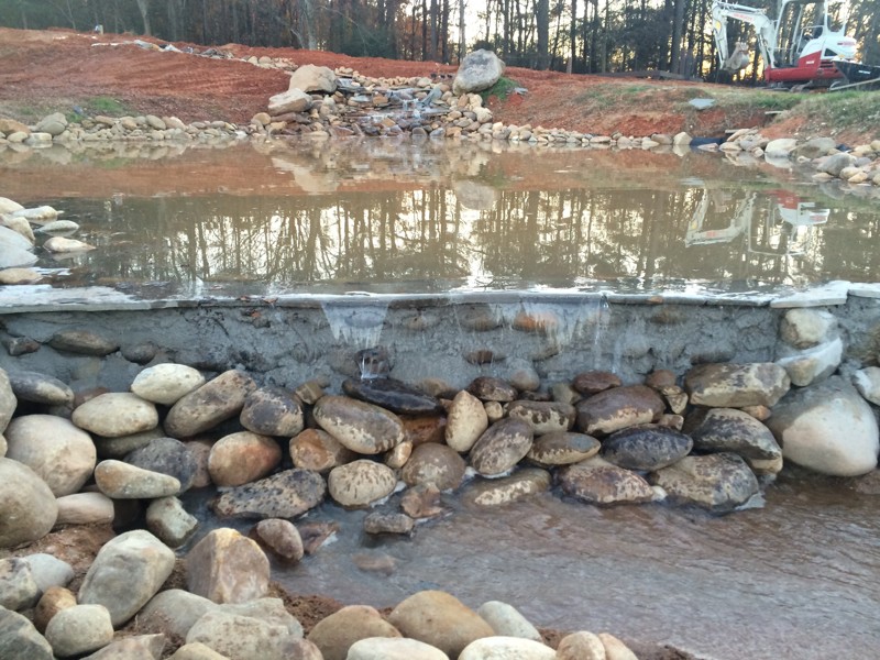 Tras realizar el lecho del lago, fue el turno de construir una pequeña cascada