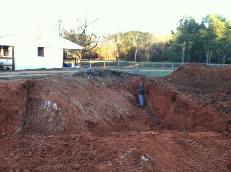 Todo comenzó con la excavación del terreno. Al no saber manejar una excavadora, para este paso tan importante solicitó la colaboración de un amigo con carnet. La excavadora si fue alquilada para un fin de semana por 300$. Al no ser expertos tuvieron que alquilar la excavadora durante dos fines de semana, pero aún así salió más barato que pagar a una cuadrilla