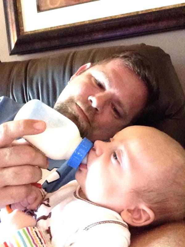 Estos son Donnie y su pequeño Zeke, con tan solo 6 meses de edad. Podemos ver que ya está hecho todo un superheroe