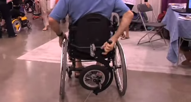 Una tercera rueda permite que la silla pueda desplazarse por terrenos más angostos. En el siguiente vídeo se ve cómo se desplaza por la nieve con este sistema, y nos recuerda a una bicicleta por su movilidad.