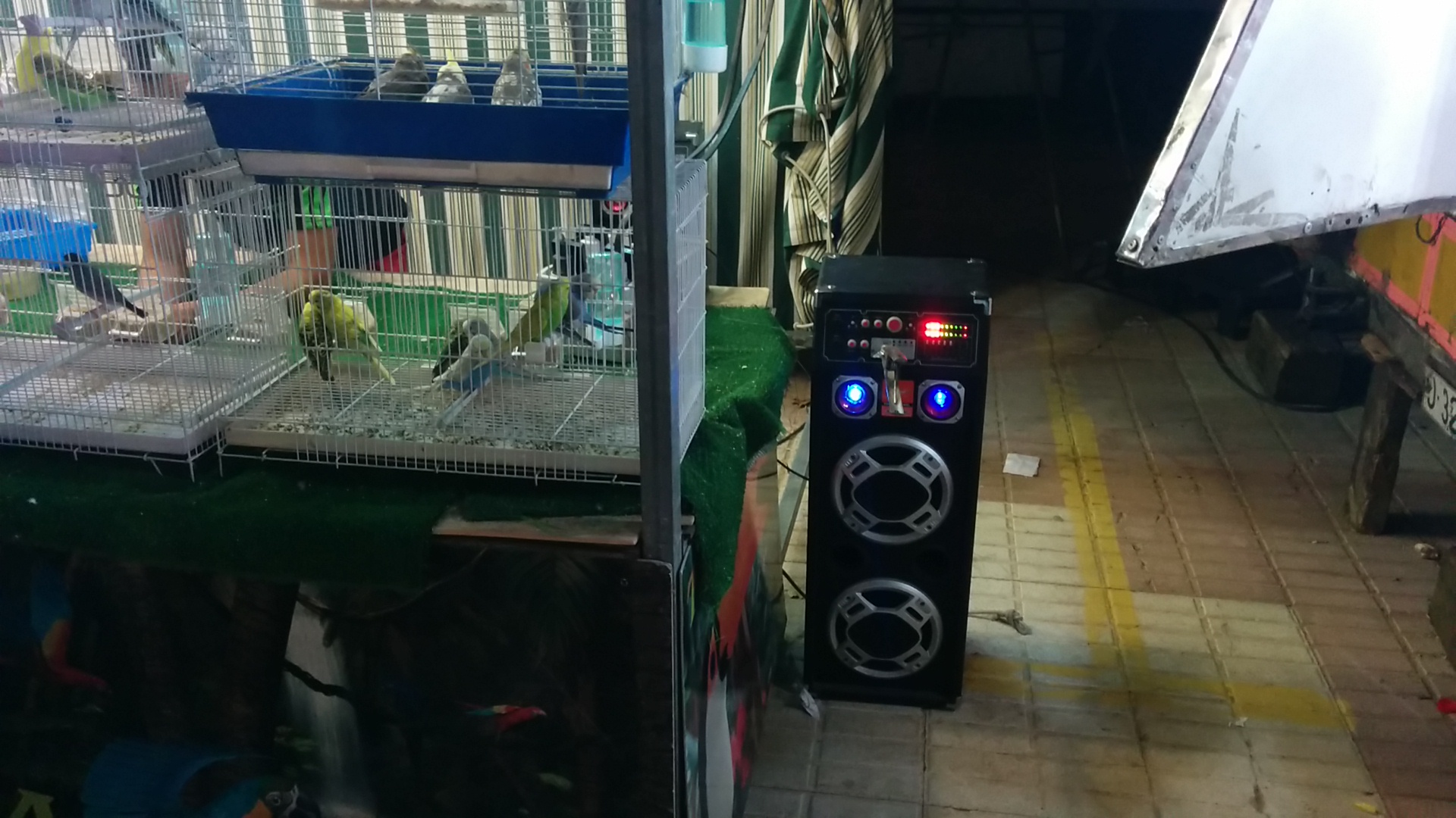 En este vídeo no se puede apreciar el volumen del sonido, pero para que os hagáis una idea, no se escucha nada más que la música. En una feria la gente habla, grita y se ríe. A esta distancia era lo único que se percibía. Las aves tienen una sensibilidad auditiva mucho mayor que la de los humanos. Por lo que someterle a este nivel de decibelios es una auténtica tortura.