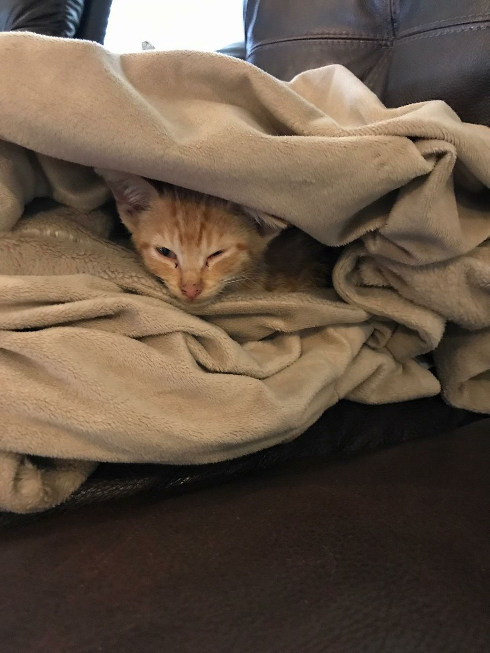 Aunque un poco magullado y deshidratado, el gatito rescatado se encontraba sano y fuera de peligro.