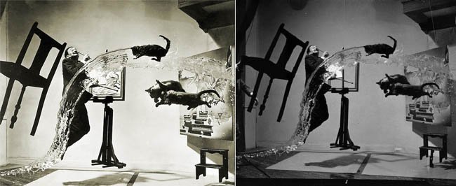 Esta foto, del famosísimo artista surrealista catalán, está retocada hasta límites insospechados. Aquí realmente no se buscaba ninguna manipulación ideológica, solo era la representación del surrealismo en su estado más puro. Una obra de arte genial, como casi todo lo que hacía el excéntrico pintor.
