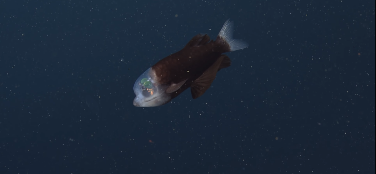 A continuación te mostramos el video del pez cabeza transparente nadando apaciblemente.
