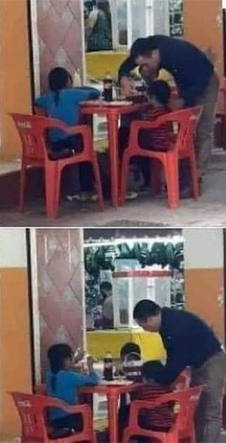 Este buen samaritano dejó de comer, se dirigió hacia los niños y les indicó que fueran a sentarse en su mesa. Luego llamó al mesero para ordenar un platillo para cada niño e incluso, ayudó a la niña más pequeña a alimentarse. Pareciera que el hombre incluso se olvidó de su plato y en cambio, enfocó toda su atención en que los niños se alimentaran bien por lo menos en ese momento.