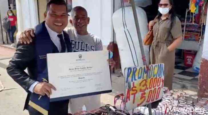 Así sucedió en Colombia, donde Alexis Castillo, quien acababa de recibir su título de abogado, no perdió la oportunidad de agradecerle a su padre y celebrar la culminación de sus estudios, dirigiéndose al puesto de trabajo del señor para darle un abrazo.