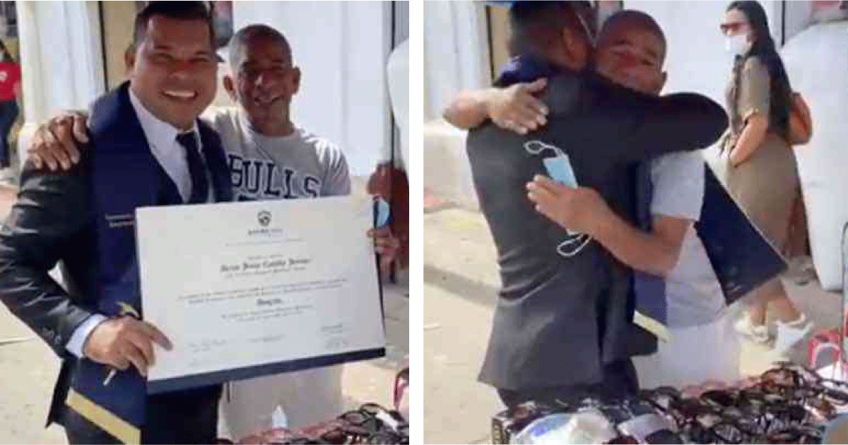 Así sucedió en Colombia, donde Alexis Castillo, quien acababa de recibir su título de abogado, no perdió la oportunidad de agradecerle a su padre y celebrar la culminación de sus estudios, dirigiéndose al puesto de trabajo del señor para darle un abrazo.