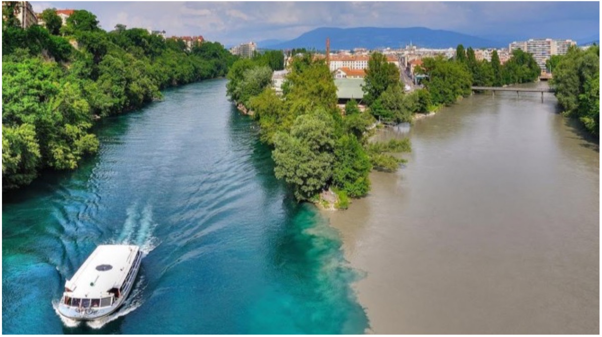 Los habitantes de la ciudad suiza de Ginebra disfrutan diariamente de un fascinante espectáculo en mitad de su localidad, ofrecido por la extraña confluencia de dos ríos.