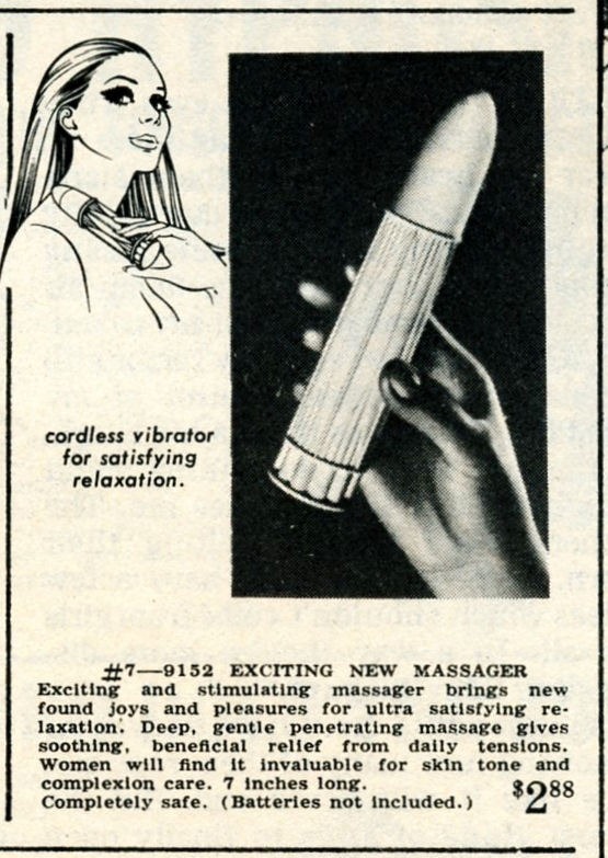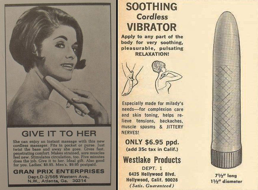 La sociedad de misa de domingo era demasiado puritana como aceptar el uso recreativo, por lo que la excusa médica era el argumento de comprar y que luego cada cual hiciera lo que quisiera en casa. Como ocurría con estos curiosos masajeadores para cuello, nada ergonómicos para el uso anunciado y si para otro…