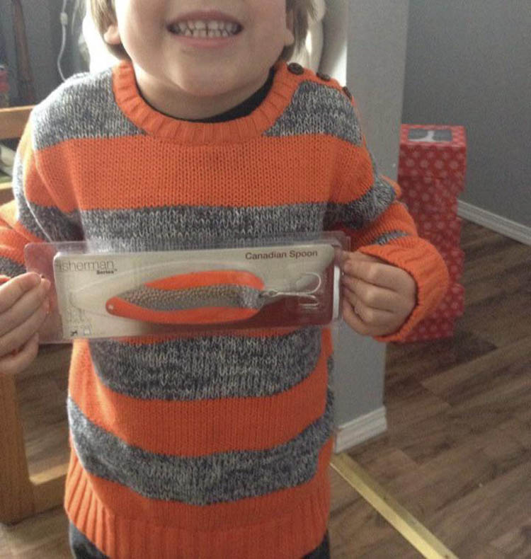 4. Este anzuelo hace juego perfecto con el suéter del pequeño.