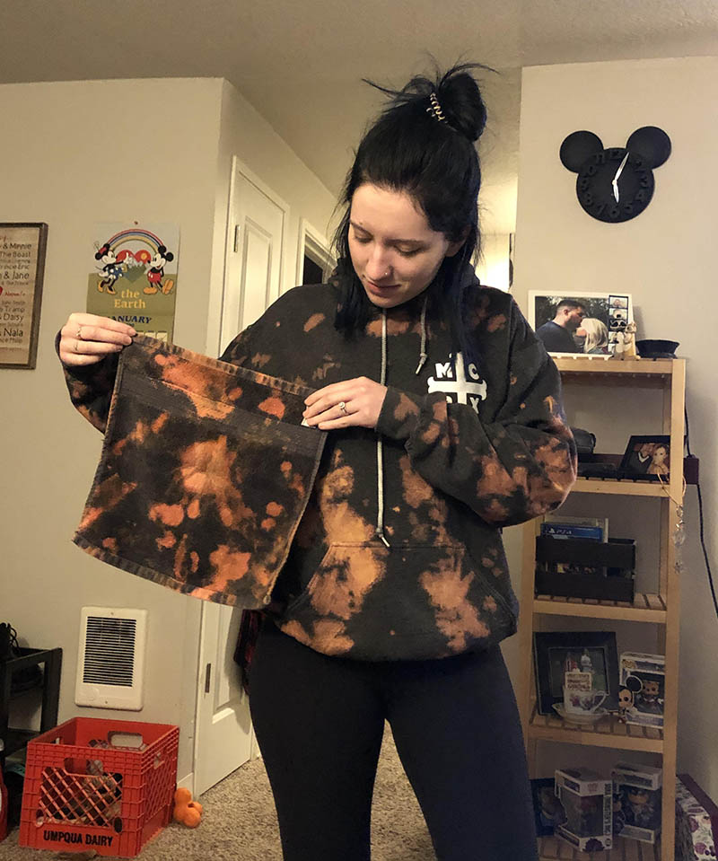 15. «Hubo in día en que mi hermana se derramó lejía en ella y utilizó una toalla para limpiarlo, otro día ella utilizó blanqueador de ropa por equivocación. Pueden decir que es distraída, pero deja su marca en lo que hace…»