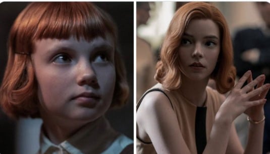 Isla Johnston como la versión infantil de Beth Harmon interpretada por Anya Taylor-Joy en la serie Gambito de dama