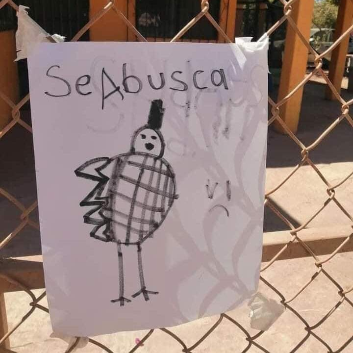 Es así como comenzó a dibujar a su gallina café en carteles de búsqueda. A un lado añadió caritas tristes y hasta se dibujó a sí misma, de igual manera con una cara larga; esto para decirle a la gente que estaba muy, muy triste por la pérdida de su animal. También escribió «Se busca» en la parte superior del cartel.