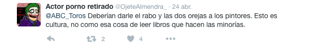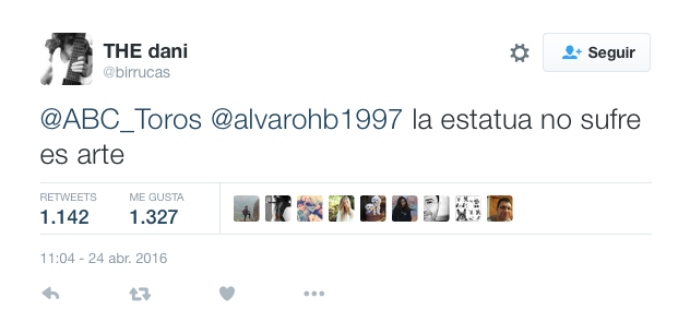 En acto reivindicativo consistió en manchar con pintura roja el monumento a Manolo Montoliu, situado en las inmediaciones de la plaza de toros de Valencia. Aunque no es el primero de este tipo, el mensaje ha quedado bastante claro. Las reacciones y respuestas al tuit subido por ABC no se hicieron esperar, hasta generar miles de ellas, a cada cual más ingeniosa. Lo cierto es que el tema ha levantado alguna que otra ampolla en el mundo del toreo, pero sin duda ha servido para reforzar la idea de que cada vez somos más los que apostamos porque este tipo de tradiciones desaparezcan.