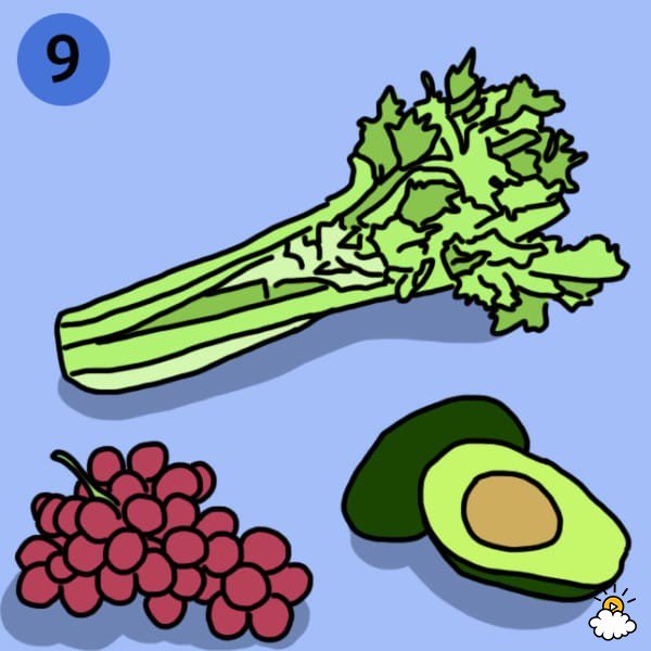 Las uvas, el apio, los aguacates, patatas hervidas, melones, berenjenas y judías verdes, deben componer una parte importante de nuestra alimentación.