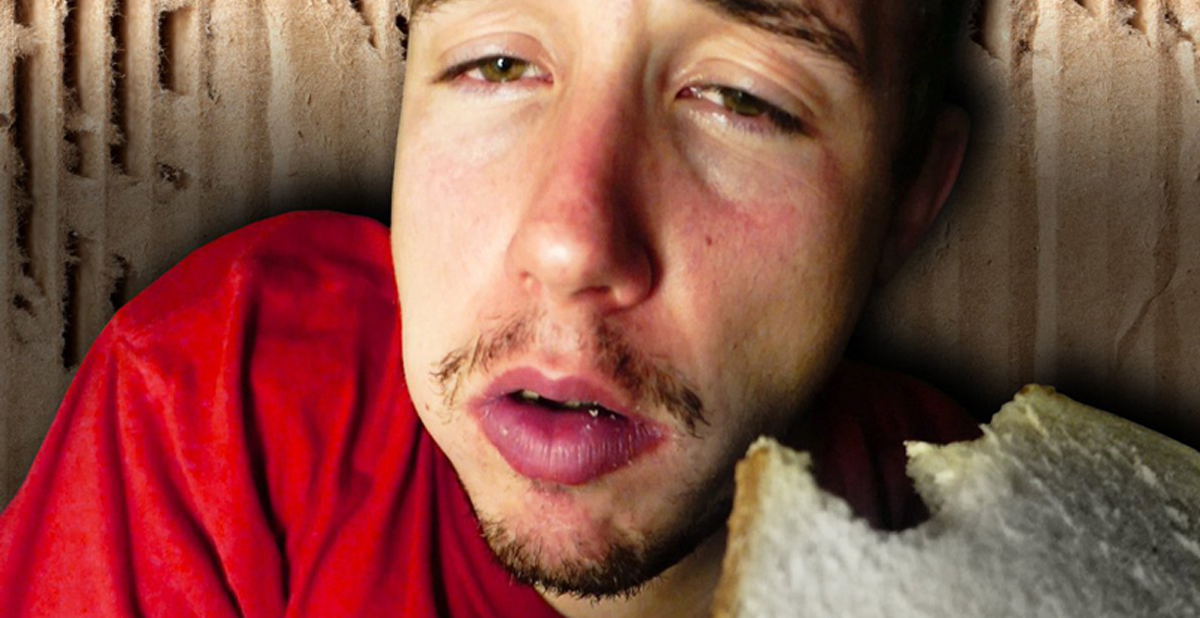 Una vez en casa, utilizó tres cajas que le habían proporcionado para confeccionar una macro caja, con el espacio suficiente para poder habitar en su interior…