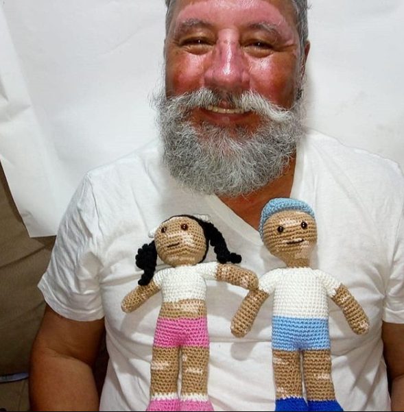 Sin embargo, él no dejó que esto le amargara, y lejos de sumirse en una depresión, optó por emprender un camino totalmente diferente. Junto a su mujer, Marilena, empezó a tejer muñecos para mantener su mente ocupada, activa y sana.
