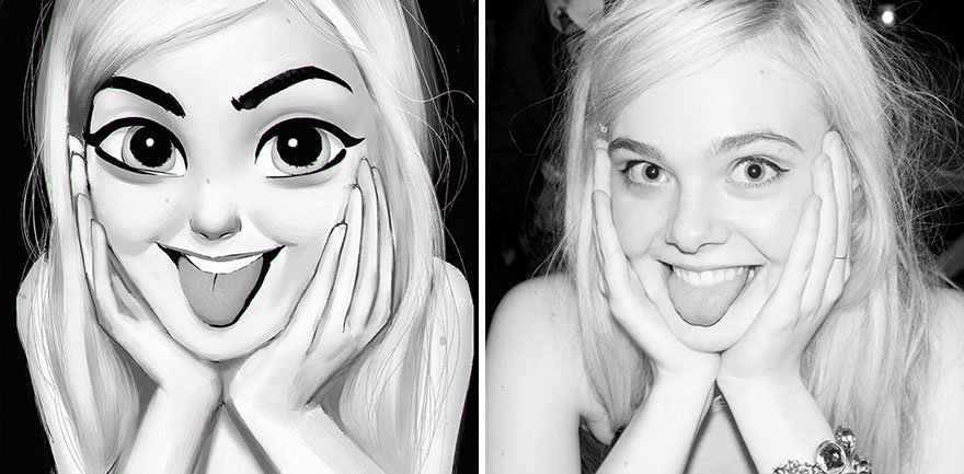 El proceso recuerda al que Jirka Väätäinen realiza con sus príncipes y princesas Disney, con la particularidad de que, aunque ambos se sirvan de las fotografías de la red para sus composiciones, este último procura obtener un resultado hiperrealista.