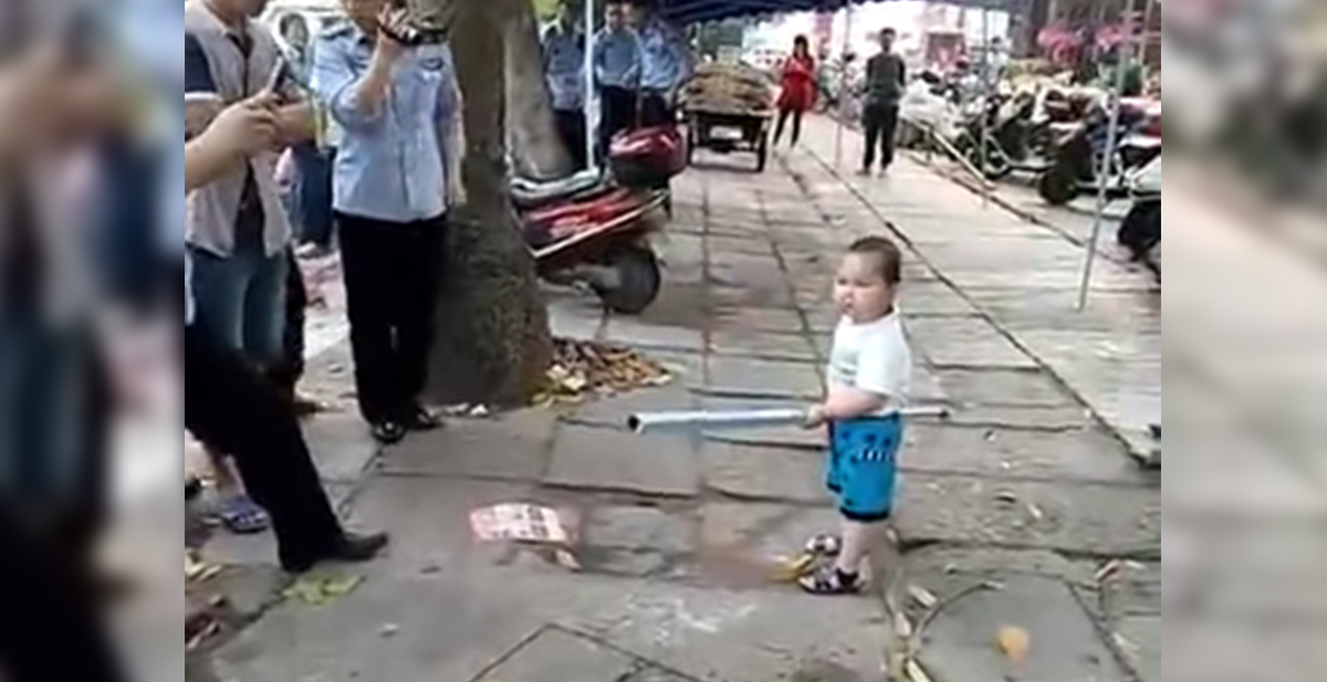 Lo que este grupo de chengguan no se esperaba era encontrarse con un pequeño niño que no iba a permitir que le hiciesen nada a su abuela. El infante se encara contra ellos al grito de «¡No toques a mi abuela! ¡vete! ¡no toques a mi abuela!» repetidas veces.