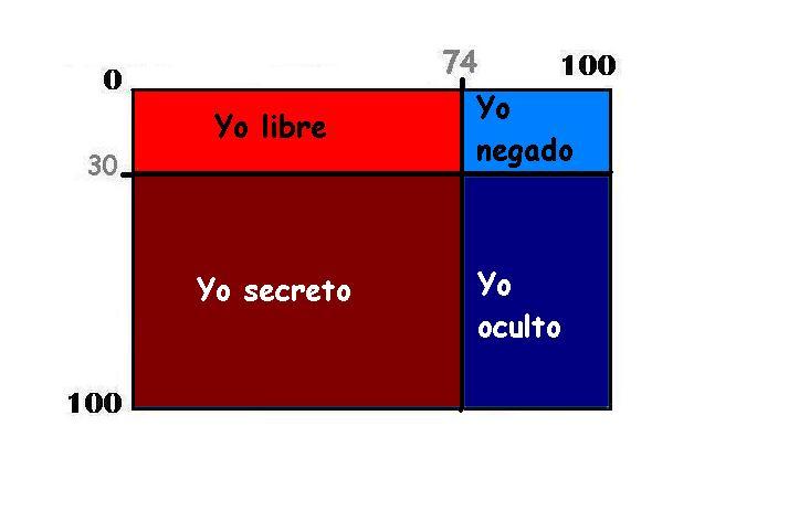 Todos tenemos estos 4 aspectos de nuestra personalidad, es lo normal. Los 2 cajetines de arriba representan las partes que los demás conocen, el Yo libre y el Yo negado son públicos, cualquiera que me conoce los ve, solo que el primero es el que yo quiero mostrar y el segundo es el que muestro sin querer.