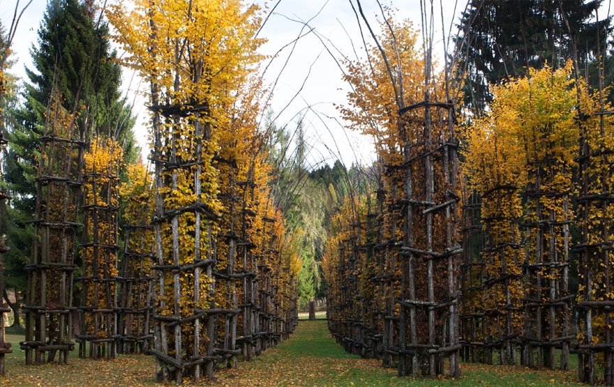 Guliano Mauri, nacido en Lodi Vecchio en 1938, fue un artista que destacó sobre todo por sus increíbles obras en la naturaleza. Utilizando en su mayoría materiales vegetales, el artista fue capaz de levantar increíbles construcciones tejiendo ramas y palos a mano, que el tiempo y la naturaleza se encargaron de transformar, hasta mimetizarse con su obra.