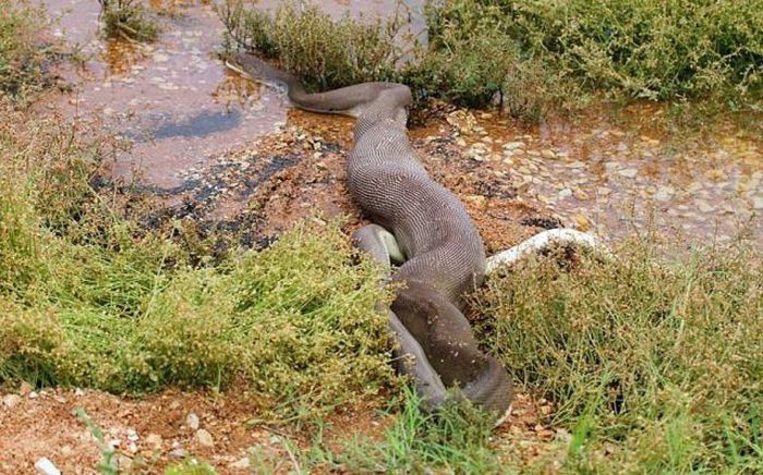 Sin embargo, en esta ocasión, la serpiente pitón, es capaz de abrazar su cuerpo y adaptarse a sus movimientos.
