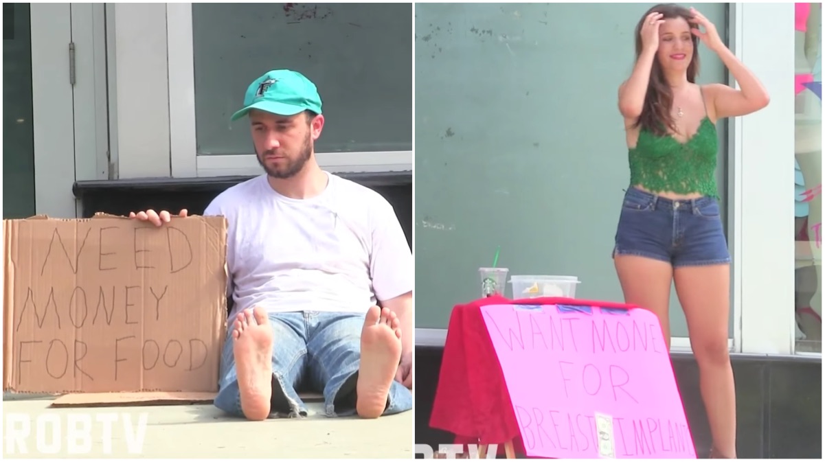 Uno pide limosna para comer y otra para financiar sus implantes de pechos. Experimento social