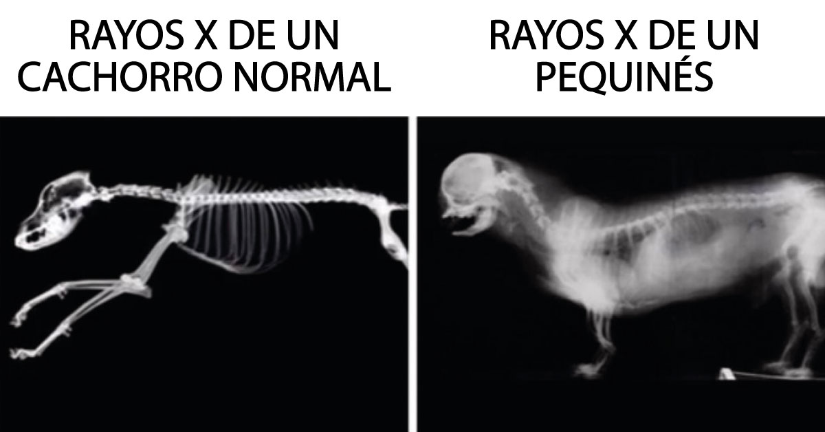 La anatomía de un perro pekinés con un perro “normal” difiere principalmente en que el primero tiene problemas de movilidad. Pueden ser muy vulnerables a las temperaturas altas debido a su gran cantidad de pelaje, otro resultado de la modificación genética.